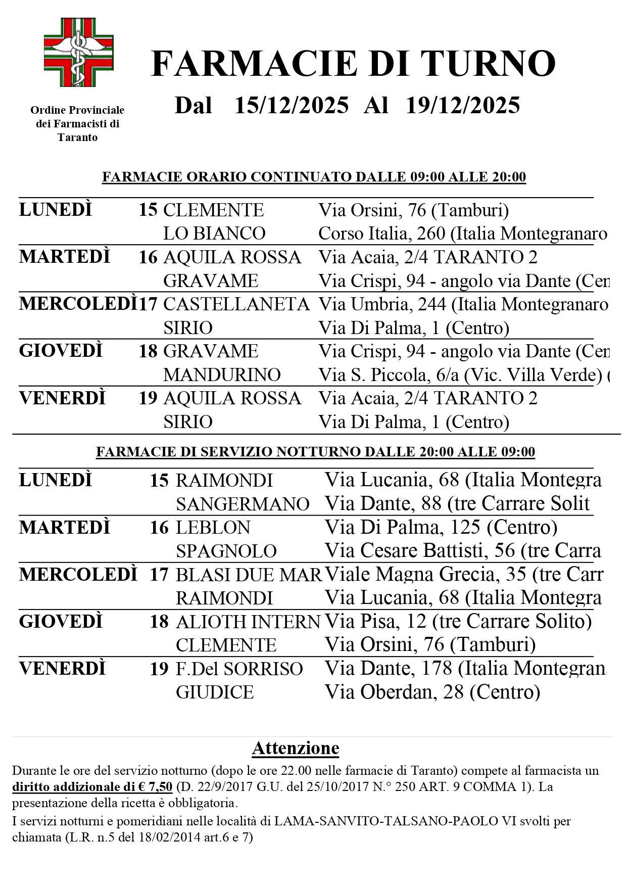 Da lunedì 15 dicembre 2025 a domenica 21 dicembre 2025