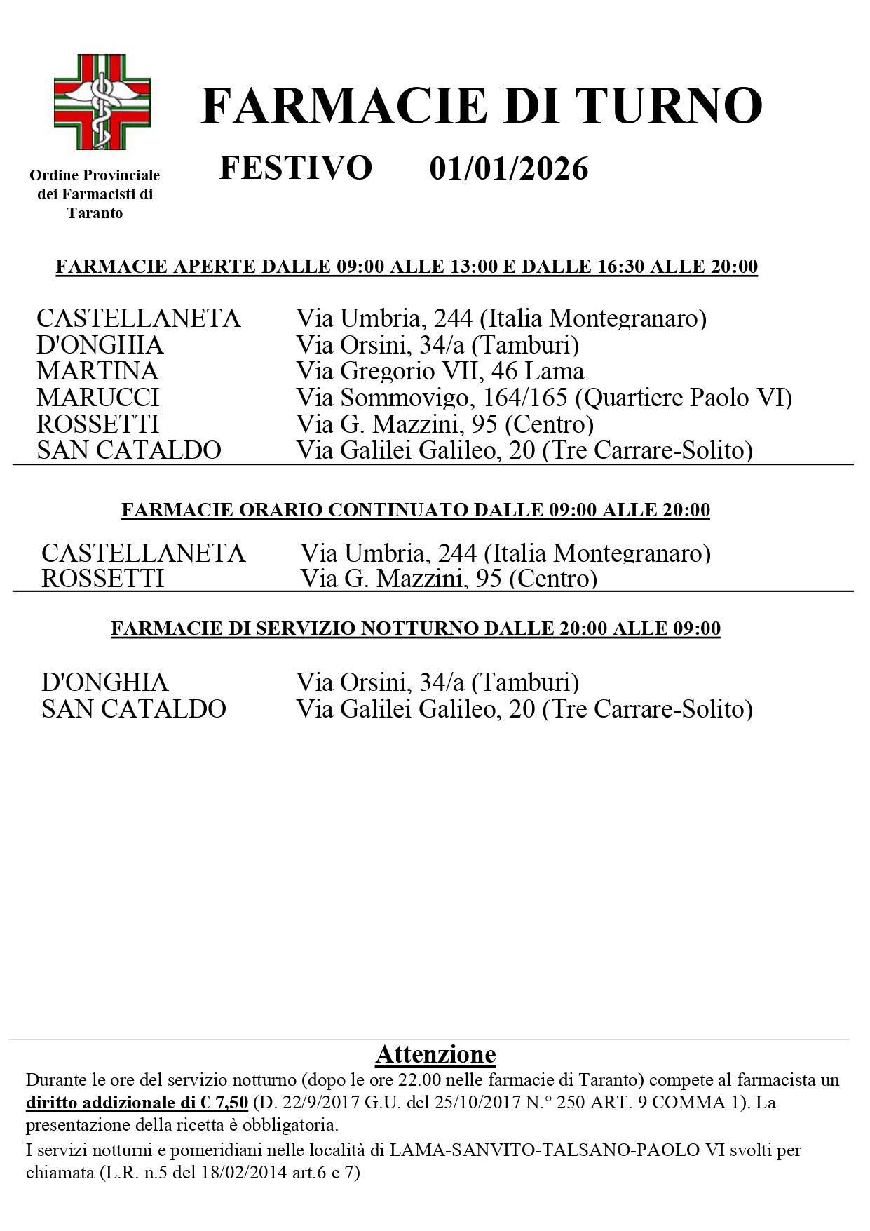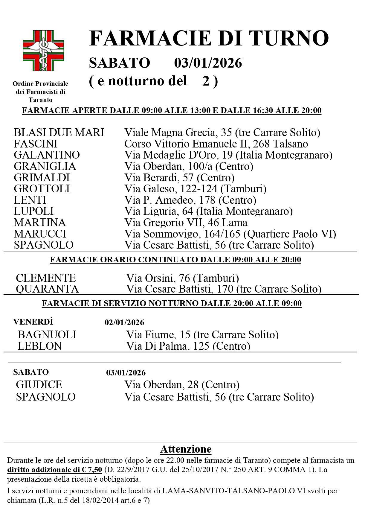 A partire da lunedì 29 dicembre 2025 alle 09:00 fino a lunedì 05 gennaio 2026 alle 09:00