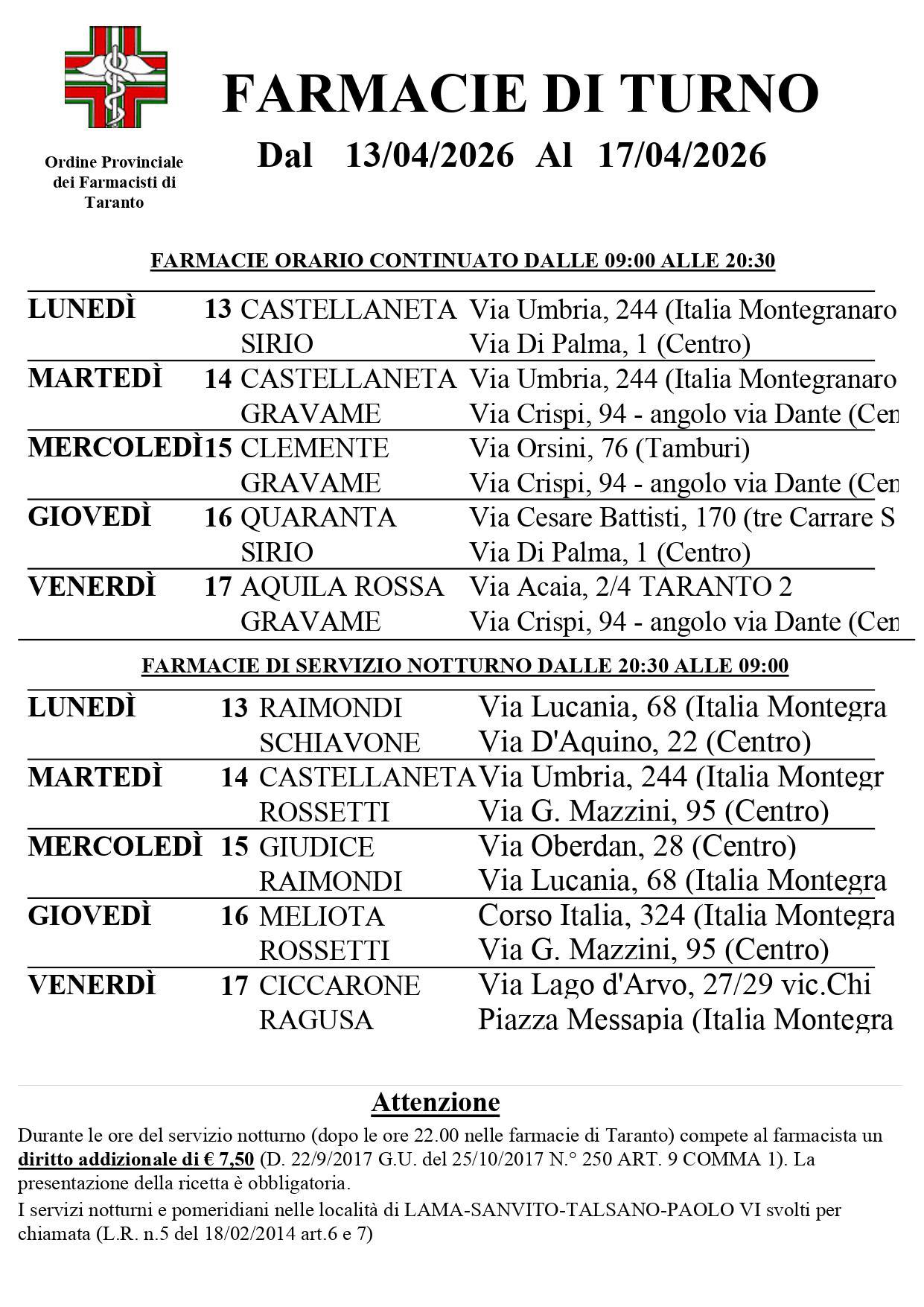A partire da lunedì 13 aprile 2026 alle 09:00 fino a lunedì 20 aprile 2026 alle 09:00